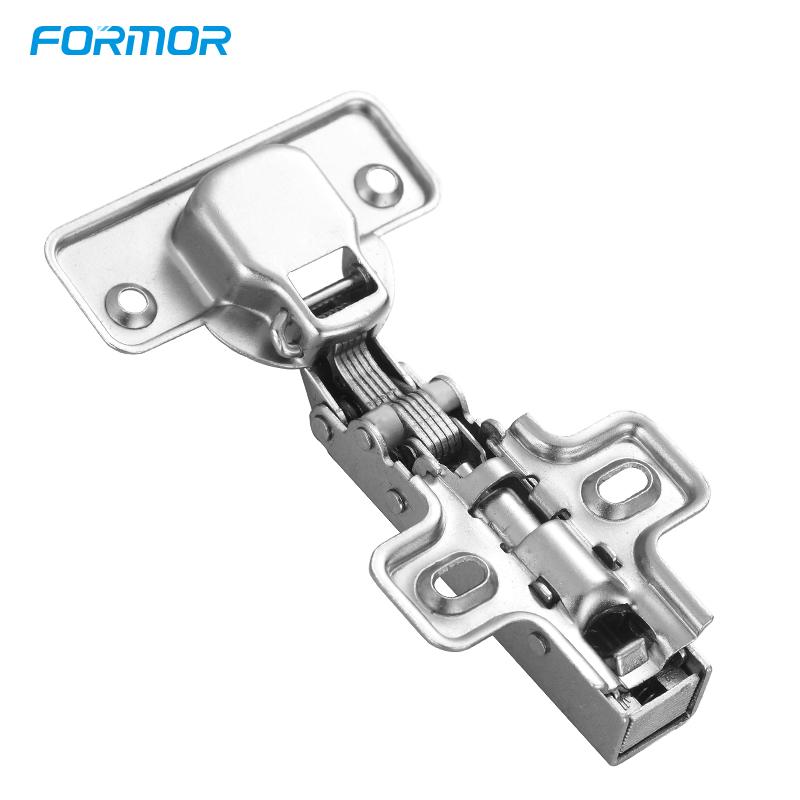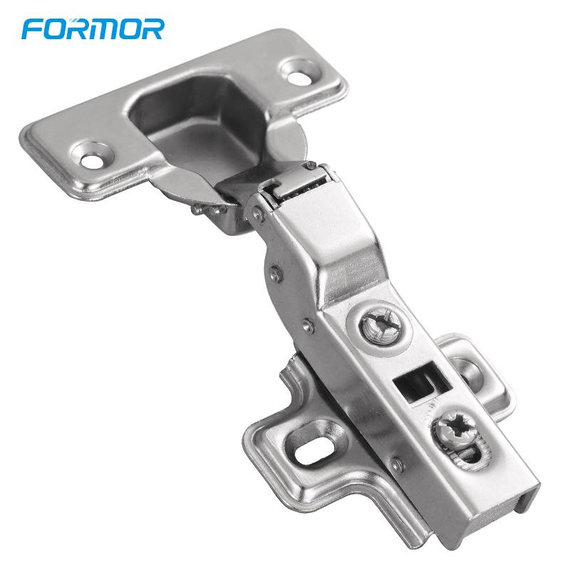 Bisagra oculta con clip de cierre suave La bisagra de cierre suave con clip combina una amortiguación hidráulica suave con una instalación rápida, lo que proporciona un cierre controlado y silencioso de la puerta y un montaje eficiente. El mecanismo de cierre suave integrado ralentiza el movimiento de la puerta antes de cerrarse, reduciendo el impacto y el ruido, a la vez que prolonga la vida útil del gabinete y la bisagra. Incluso con aperturas y cierres manuales frecuentes, la bisagra mantiene un rendimiento estable y constante.