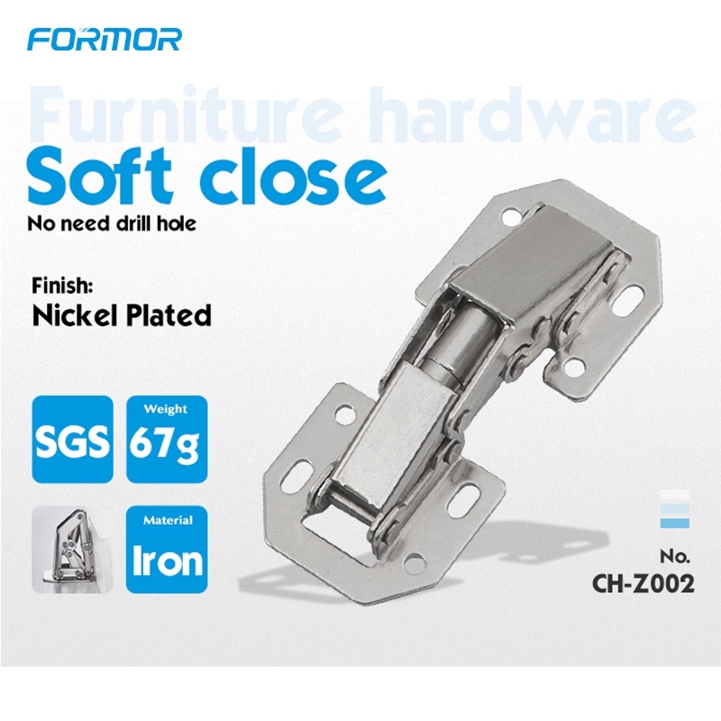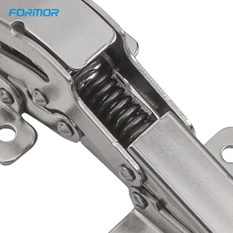 Diseño de instalación sin perforaciones No requiere ranuras ni taladros. La bisagra se fija directamente con tornillos, lo que protege la integridad del tablero del gabinete y prolonga la vida útil del mueble.