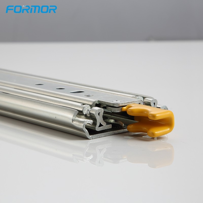 R: Es una corredera de cajón de montaje lateral que utiliza cojinetes de bolas de acero para garantizar un movimiento suave y estable del cajón.