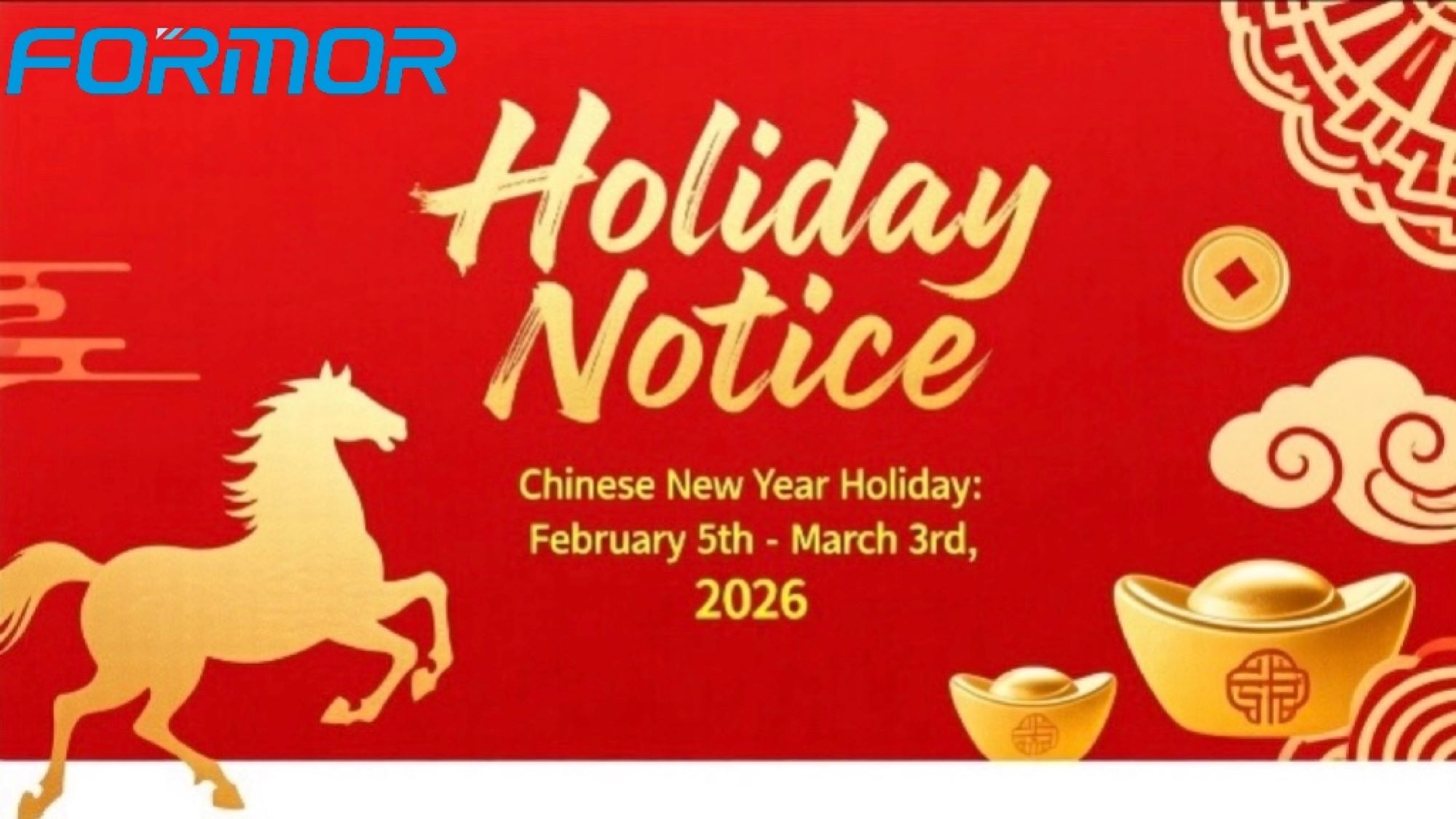 Para permitir que nuestros dedicados empleados celebren el Festival de Primavera con sus familias y den la bienvenida al nuevo año con energía renovada, nuestra empresa observará un período de vacaciones de