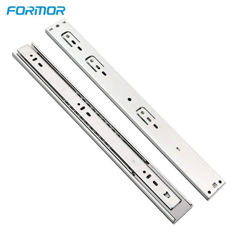 Descripción del Producto Construcción de acero laminado en frío de alta resistencia : Diseñado con acero laminado en frío de alta resistencia, este tobogán resistente ofrece una integridad estructural y una capacidad de carga incomparables para aplicaciones de almacenamiento industrial y comercial. Opciones de 2 y 3 bolas disponibles : Disponible en estructuras con 2 y 3 cojinetes de bolas para satisfacer diferentes requisitos de carga, lo que permite a los clientes elegir según el peso del cajón y la frecuencia de uso. Rendimiento de deslizamiento suave y estable : Los rieles de acero de precisión combinados con el movimiento de cojinetes de bolas garantizan un funcionamiento suave, estable y constante del cajón durante la apertura y el cierre. Construcción de material de acero duradero : Fabricado con material de acero de calidad con un espesor confiable, que proporciona soporte de carga estable y durabilidad a largo plazo en condiciones de uso diario. Dibujo del producto Este dibujo proporciona una descripción completa de las posiciones de montaje y las dimensiones del producto, lo que hace que la instalación sea más fácil y precisa. Ancho: 35 mm Longitud: 250-600 mm Altura: 12,7 mm *Para tamaños personalizados, está disponible el servicio OEM y ODM. Espesor disponible 0,65 x 0,65 x 0,65 mm 0,7*0,7*0,7 mm 0,8 x 0,8 x 0,8 mm Aplicación del producto Ideal para todo tipo de Salón, Dormitorio, Cocina, Baño. Diseñado para un movimiento suave, gran durabilidad y comodidad diaria. El avanzado acabado niquelado garantiza que la bisagra permanezca libre de óxido incluso en ambientes húmedos. Control de calidad y pruebas "Los detalles marcan la diferencia": nuestro riguroso proceso de control de calidad En FORMOR, la calidad no es solo una promesa; es un proceso verificado por datos. Prueba de niebla salina: resistencia a la corrosión verificada durante 48 horas. Prueba de ciclo: comprobado que soporta más de 50.000 ciclos de apertura y cierre. Inspección: Inspección del producto 100% estándar antes del embalaje para determinar la máxima sensación de uso. Servicio OEM y ODM 1. Personalización del logotipo del producto Ofrecemos opciones de marcado láser y estampado de logotipos para satisfacer sus necesidades de marca. Disponemos de soluciones de logotipos personalizados para bisagras, sistemas de cajones y otros productos de ferretería. 2. Personalización de la caja exterior Las cajas se pueden personalizar con su logotipo, color, etiquetado y especificaciones de embalaje. Apoyamos el diseño de cajas OEM para garantizar un envío seguro y una presentación de marca premium. 3. Personalización de bolsas de plástico de color, bolsas de plástico con logotipo, blíster y cubiertas de papel. Bolsa de plástico de color / Bolsa de plástico con logotipo / Blíster / Cubierta de papel Se puede personalizar con su logotipo, etiquetado y especificaciones de embalaje. Apoyamos el diseño de cajas OEM para garantizar un envío seguro y una presentación de marca premium. 4. Moho Personalización Podemos desarrollar nuevos moldes basados en sus dibujos o muestras. Nuestro equipo de ingeniería respalda los ajustes estructurales, la verificación de prototipos y la personalización completa de OEM para bisagras, correderas y sistemas de cajones. 5. Personalización de materiales Los materiales se pueden personalizar con opciones de acero laminado en frío premium Shanghai Shinny, Shanghai Matt, Q235 y Jieyang. Brindamos soporte en la selección de materiales para satisfacer diferentes niveles de presupuesto, requisitos de rendimiento y mercados objetivo. 6. Personalización del acabado de superficies Ofrecemos múltiples opciones de acabado de superficies para satisfacer diferentes requisitos de diseño y resistencia a la corrosión. Los acabados disponibles incluyen niquelado de una sola capa, niquelado de doble capa de cobre + níquel, niquelado de titanio, niquelado negro, pulverizado negro y pulverizado dorado. Preguntas frecuentes P: ¿Qué es una corredera de cajón con cojinete de bolas normal? A: Es una corredera de cajón de montaje lateral que utiliza cojinetes de bolas de acero para garantizar un movimiento suave y estable del cajón. P: ¿Para qué se utilizan habitualmente las correderas con cojinetes de bolas normales? A: Se utilizan ampliamente en gabinetes de cocina, guardarropas, muebles de oficina y cajones de almacenamiento en general. P: ¿Qué capacidad de carga ofrecen las correderas con cojinetes de bolas normales? A: Los modelos estándar suelen soportar entre 30 y 45 kg, según el tamaño y la instalación. P: ¿Las guías con cojinetes de bolas están disponibles en extensión parcial y total? A: Sí. Están disponibles opciones de extensión parcial y extensión completa.
